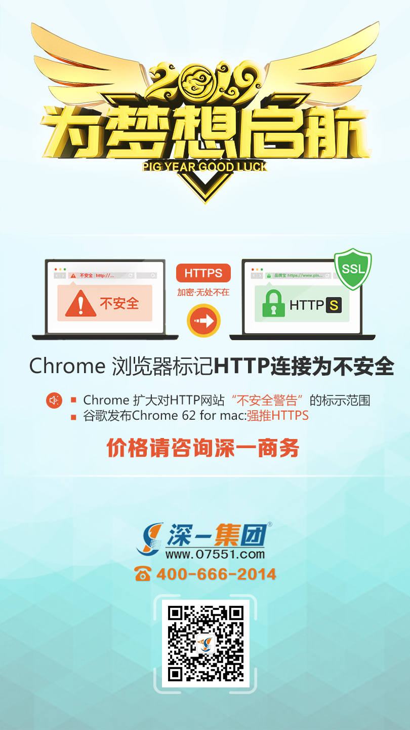 [深一SSL證書]HTTPS加密無處不在,谷歌Chronme瀏覽器2017年7月起標記HTTP連接為不安全,SSL證書是您避不開的安全保障。詳細報價咨詢深一商務!