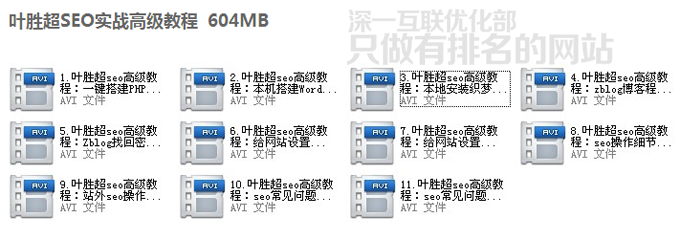 深一優(yōu)化部seo教程包總共包括17套完整SEO視頻教程 分別是: